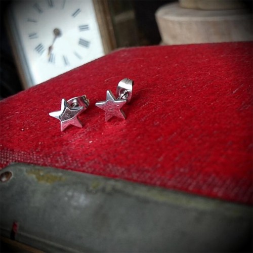 Boucles d'oreilles étoile argentées en acier inoxydable.