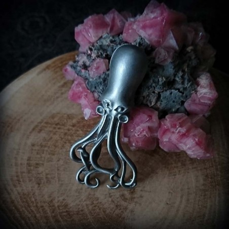Broche pieuvre stylisée, couleur grise mat satinée.