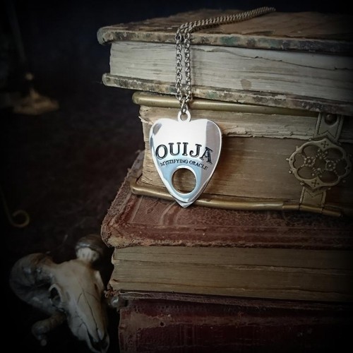 Collier pendentif Ouija, en acier inoxydable. Couleur argent.