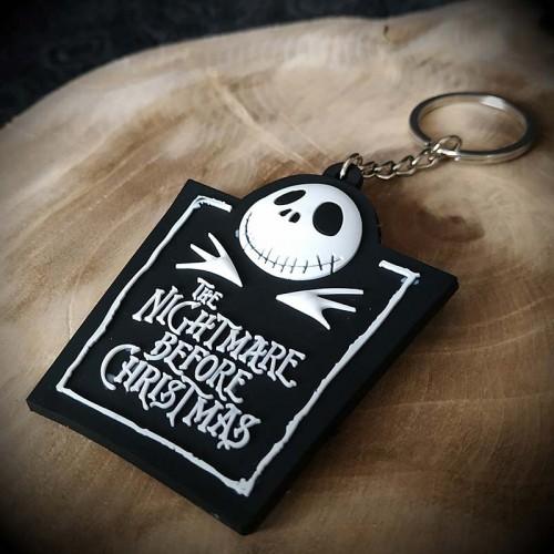Grand Porte-clés en caoutchouc 55 x 66 mm, motif recto verso "L'Etrange Noël de Monsieur Jack" (inscription en version originale, "The Nightmare before Christmas").